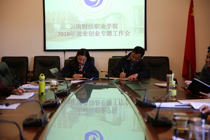 李思泽书记、陶昌学院长与各系主任及书记签订《云南财经职业学院2018年就业工作目标责任书》
