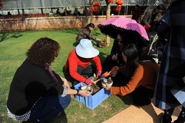 3月8日下午2点,参加活动的女教工齐聚云南民族大观园,在井然的秩序中,她们依次参观了云南翡翠艺术馆、孔雀园、红豆杉大道、国家宝藏花园;随后又体验了茶礼文化园、观看了花车表演、参观了云南非遗文化基地;别具特点的活动是女工委精心安排的到云朵农家 “种肉肉”活动,女教工们可以各自挑选一株精美的多肉植物,再领取一个漂亮的花盆,在现场亲自动手 “种肉肉”,种好的多肉植物便是今天“三八”节的特别小礼物,可由女教工各自带回。