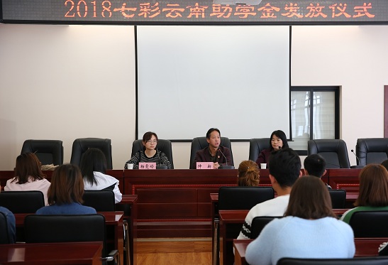 3月22日,2018年七彩云南助学金发放仪式在学校财苑楼三楼多媒体教室举行,仲新副院长和相关部门负责人参加了活动。助学金发放仪式由校企合作处石彬副处长主持。