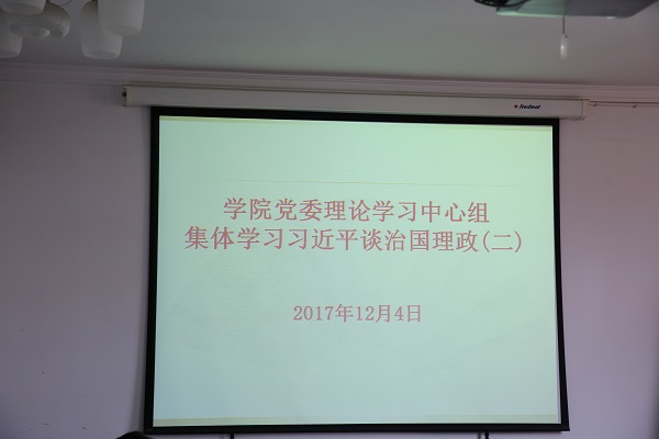 2017年12月4日上午,学院党委组织了以党的十九大报告为主题的党委理论学习中心组集体学习。学院党委副书记、院长陶昌学同志,纪委书记杨红英同志,副院长李树伟同志、副院长仲新同志、副院长沈豫琼同志、全体中层干部及各基层党组织支委参加了会议,会议由党委副书记、院长陶昌学同志主持。