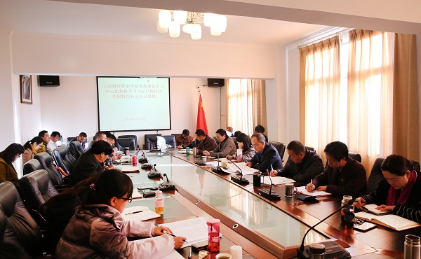 党委书记李思泽同志领学了习近平新时代中国特色社会主义思想 “八个明确”“十四个坚持”相关内容。纪委书记杨红英同志全文领学习近平总书记就新华社文章作出重要批示精神,传达了驻财政厅纪检组关于印发2018年至2020年开展扶贫领域腐败和作风问题专项治理实施方案的通知。院长助理彭锋泽同志传达了《中共云南省纪律检查委员会 中共云南省委组织部转发中共中央纪委机关中共中央组织部关于开好2017年度县以上党和国家机关党员领导干部民主生活会文件的通知》。