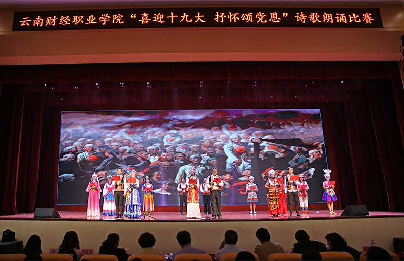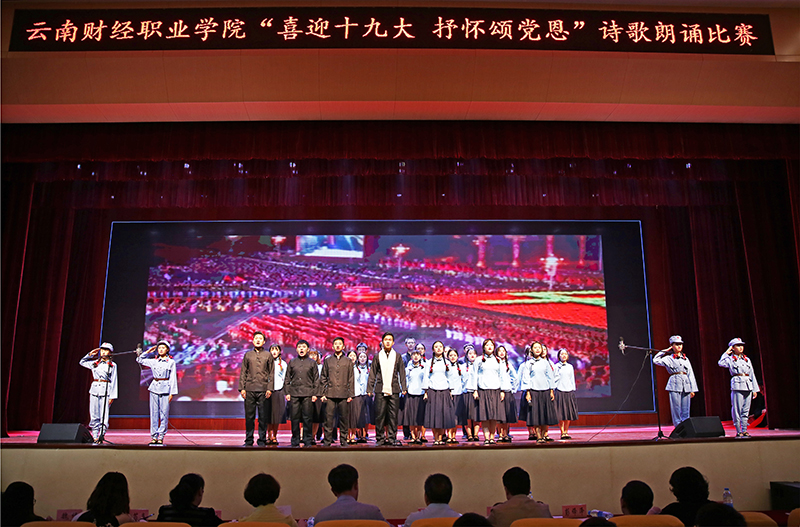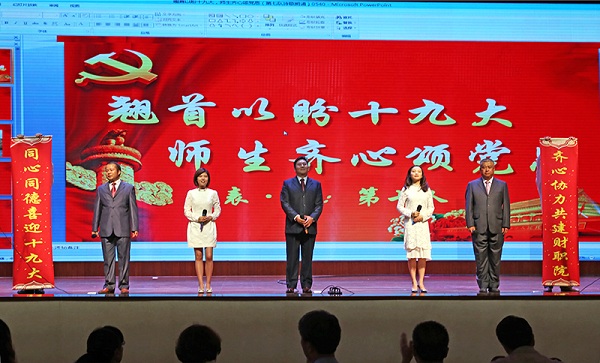 2017年10月13日下午,经过精心准备,满怀着师生员工爱党爱国爱校情怀,讴歌中国梦,谱写财职院篇章的朗诵比赛在学院大礼堂隆重举行。学院领导、全体教职员工和部分学生代表共计700余人观看了比赛。学院党委书记李思泽同志对此次朗诵比赛全程进行了精心指导。