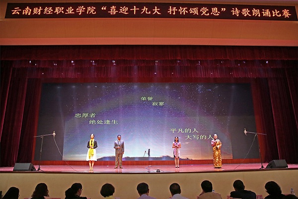 喜迎十九大,共筑中国梦,学院将以此次朗诵活动为契机,踏实工作,勤奋学习,在实现中华民族伟大复兴的中国梦的征途上奋勇拼搏、担当作为。