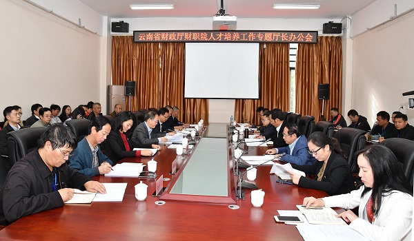 2017年10月16日,云南省财政厅财职院人才培养工作专题厅长办公会在云南财经职业学院召开。云南省财政厅党组书记、厅长陈建国,厅党组成员、副厅长杨昆出席会议。厅办公室、人教处、预算局、厅机关党委、教科文处负责同志,学院领导和中层以上干部参加了会议。厅党组成员、副厅长杨昆主持会议。