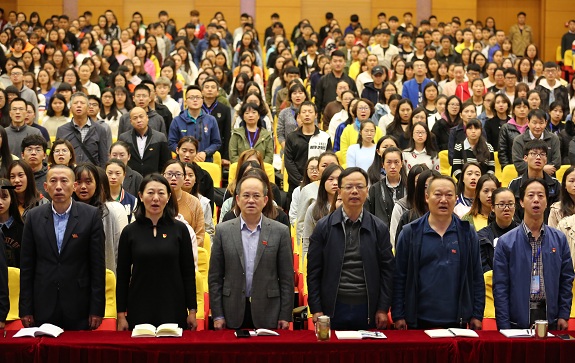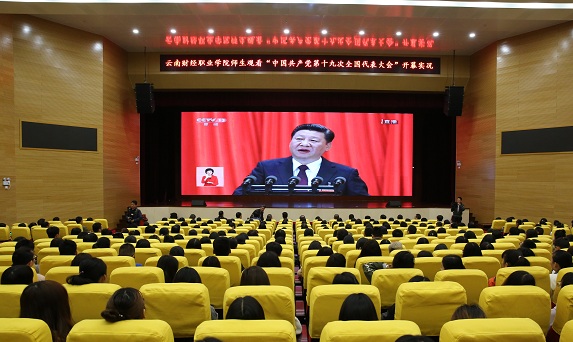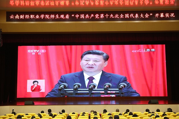 2017年10月18日上午9:00时,中国共产党第十九次全国代表大会在北京人民大会堂召开。按照省委《关于认真组织收看党的十九大开幕实况的通知》及厅直属机关党委组织收看活动的具体安排,我校党委组织师生在大礼堂收看了党的十九大开幕式实况。学院领导、中层干部、基层党组织支委、各系辅导员、无课党员、教师和部分学生代表共计700余人一起聆听了习近平总书记所作的题为《 不忘初心,牢记使命,高举中国特色社会主义伟大旗帜,决胜全面建成小康社会,夺取新时代中国特色社会主义伟大胜利,为实现中华民族伟大复兴的中国梦不懈奋斗》的报告。