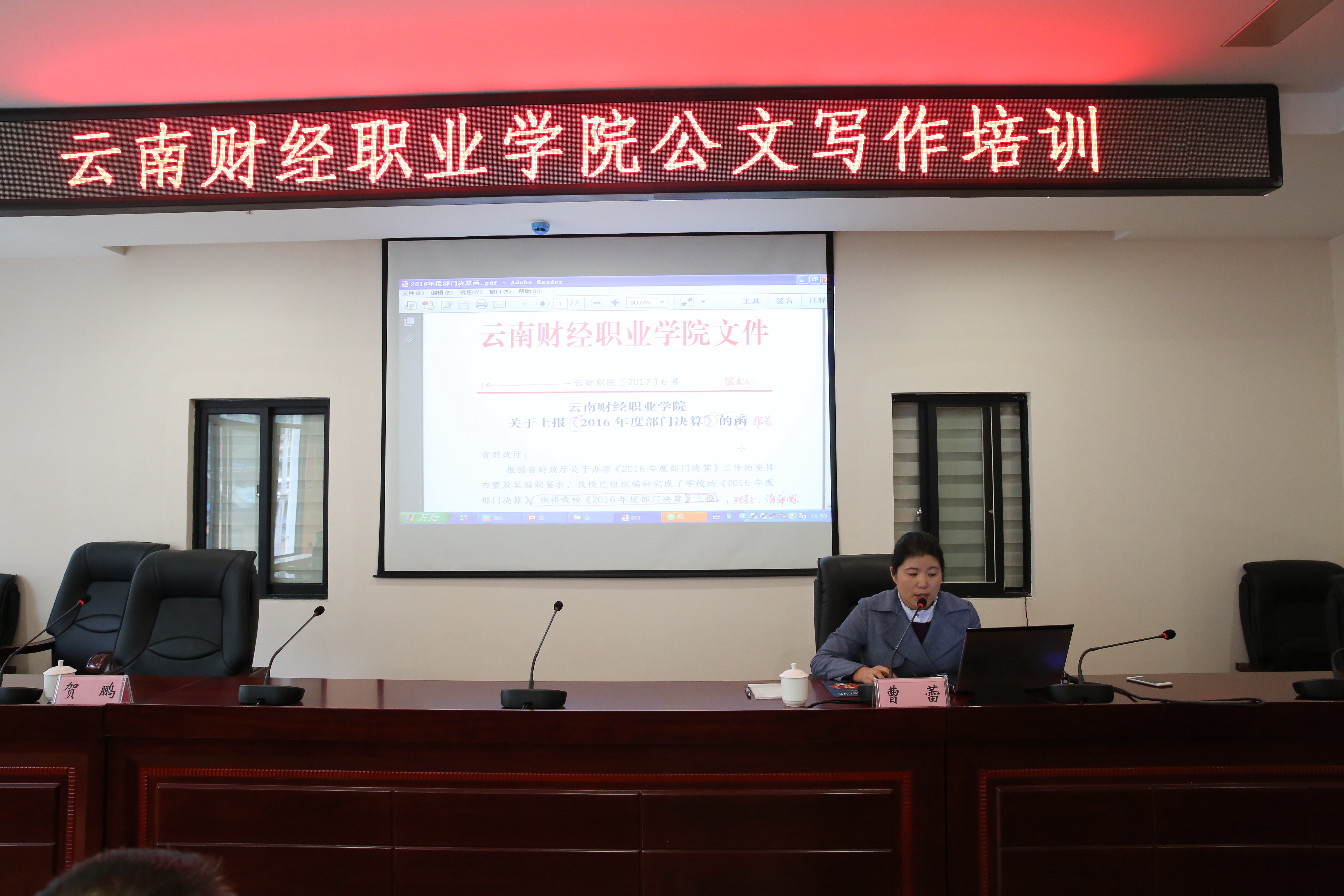 为进一步提升公文写作能力,规范公文写作格式,提高办文质量,2017年11月2日下午,学院邀请省教育厅办公室曹蕾博士为学校中层以上干部、各部门(系部)教学秘书、信息员及基础部语文教师举行公文培训。