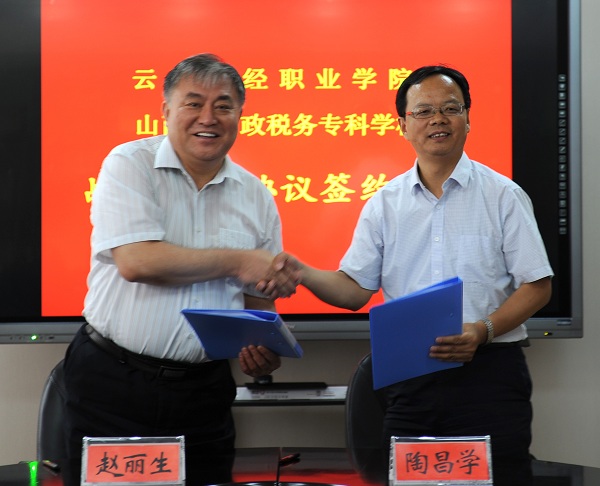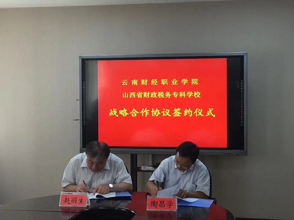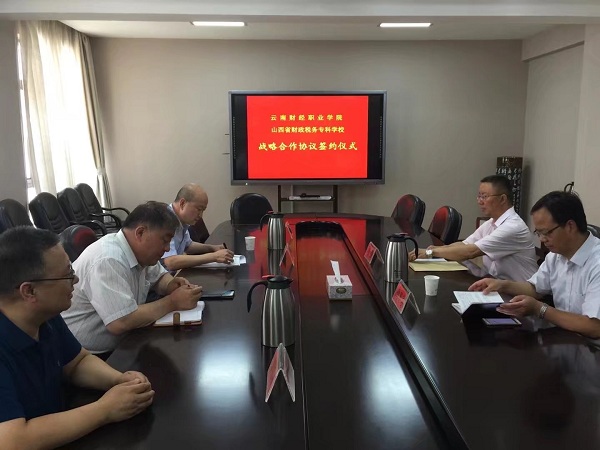2017年7月11日上午9:00,我院在山西财专会议室举行了“山西省财政税务专科学校与云南财经职业学院战略合作协议签约仪式”。山西省财政税务专科学校赵丽生校长、杨晓明副校长、会计学院段全虎副院长,我院陶昌学院长和科研处习强处长共同出席了签约仪式。