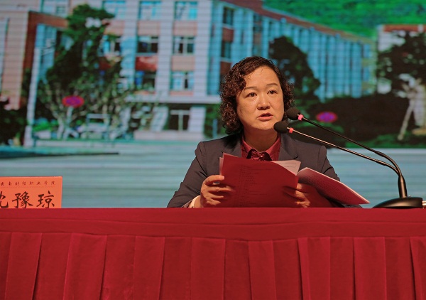沈豫琼副院长宣读《关于表彰在2017年云南省高校学生技能大赛中取得优异成绩的选手、指导教师及系部的决定》