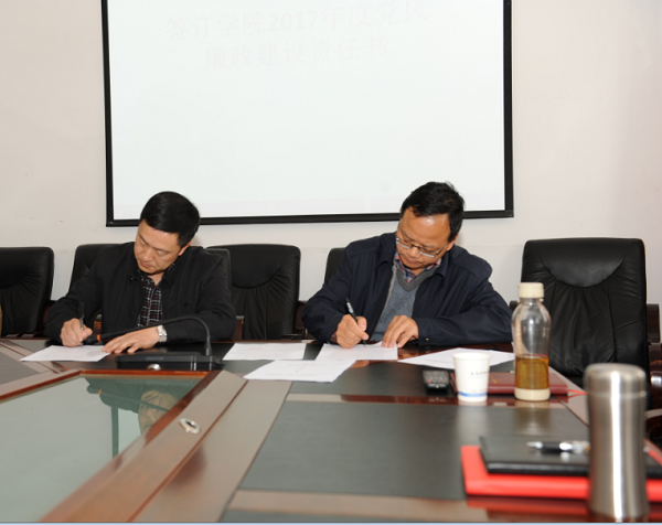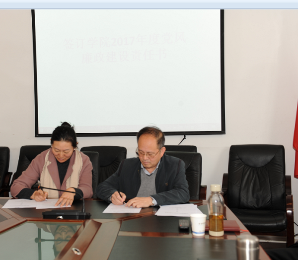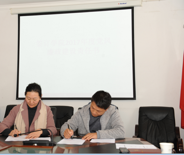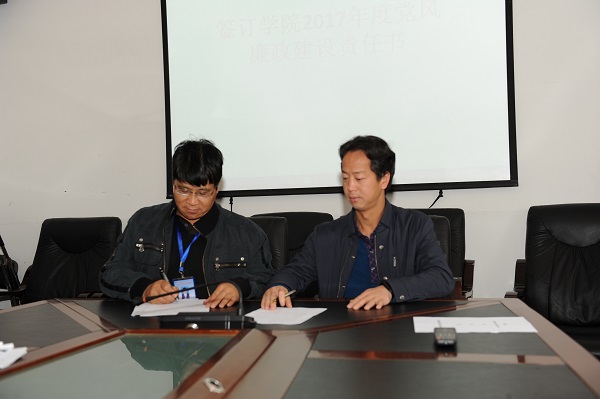 学院领导分别与各支部、处室、系部签署了学院2017年度党风廉政建设责任书、党建工作责任书、意识形态工作责任书。