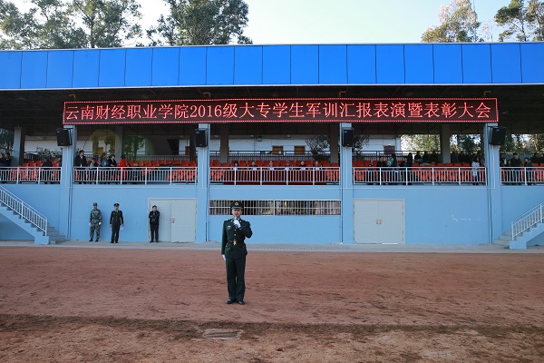 2017年1月15日上午9点,经过十天严格的军事化训练,迎来了十天军训成果的最后检阅。我院2016级军训汇报表演暨表彰大会在学院田径场隆重举行,学院领导,各系部主任书记,2016级大专班主任及云南省全民国防教育协会学生军训基地参训教官出席了大会,汇报表演在庄严雄壮的国歌声中拉开序幕。