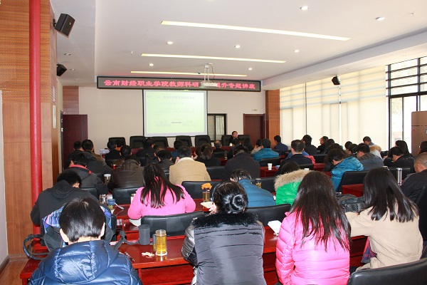 2月28日下午,学院特邀云南师范大学周智生教授在财苑楼三楼举行教师科研能力提升专题讲座。学院党委书记李思泽、学院院长陶昌学、纪委书记杨红英、副院长李树伟、仲新、沈豫琼和全校专兼职教师参加了专题讲座。
