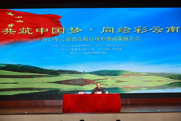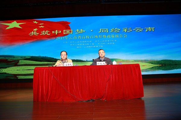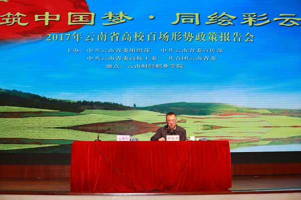 2017年3月9日上午,云南省第十次党代会精神宣讲报告会在学院大礼堂举行。省委宣讲团成员、省财政厅党组成员、副厅长、非税管理局局长计毅彪应邀作宣讲报告。学院领导、全体教职工、部分学生代表共计700余人聆听了报告会。学院党委书记李思泽同志主持报告会。