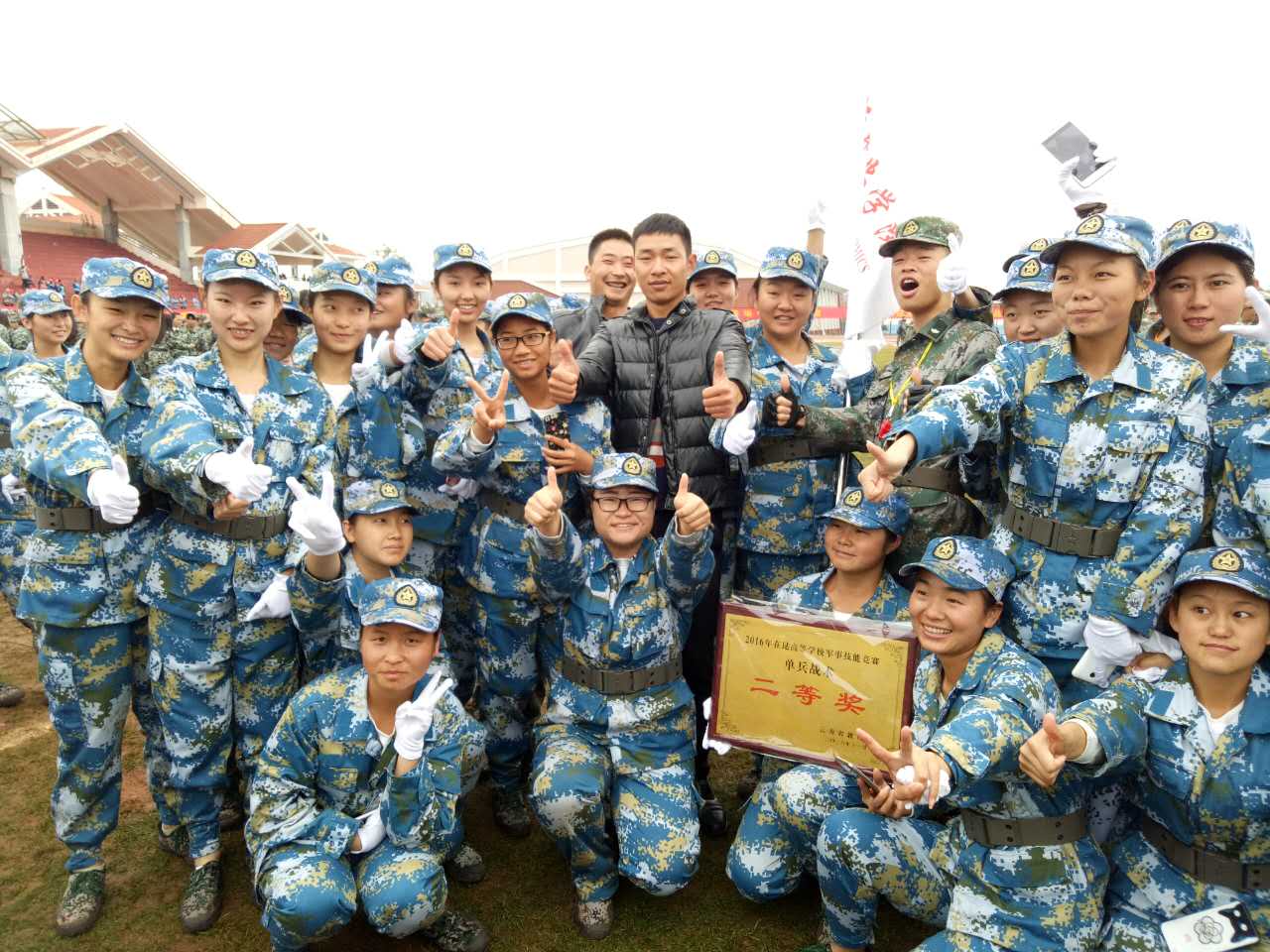 为全面贯彻落实中央有关文件精神,展示国防教育成果,展现云岭学子风采,11月30日-12月2日,由云南省教育厅主办、云南民族大学承办的2016年云南省在昆高校军事技能竞赛在云南民族大学呈贡校区隆重举行。竞赛期间,来自在昆高校的39支代表队、2000余名大学生参加了此次军事技能竞赛,完成了单兵战术、五公里越野、精度射击、武装定向越野、军事理论考核等五个项目的竞赛。经过激烈角逐,我院代表队在比赛中团结协作、顽强拼搏,获得单兵战术二等奖(高职第一)和军事技能竞赛优秀奖。