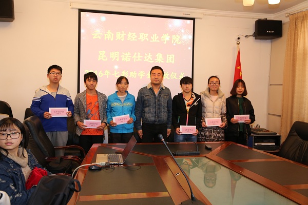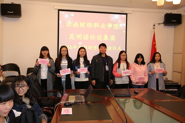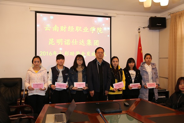 2016年12月21日,昆明诺仕达集团2016年七彩云南助学金发放仪式在办公楼一会议室举行,学院院长、学生处处长和宣传统战部、院团委、招生就业处老师及2015级30名受助学生参加了本次活动,仪式由校企合作处副处长石彬主持。