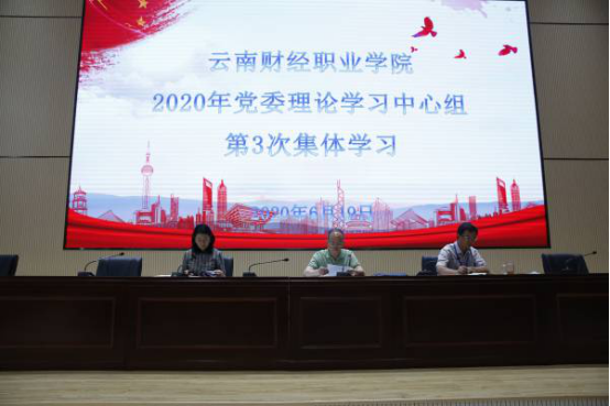6月19日上午,学校在报告厅举行2020年党委理论学习中心组第3次集体学习,本次集体学习的主题是全面从严治党。党委书记李思泽同志主持学习,党委副书记、校长陶昌学同志,党委委员、纪委书记杨红英同志,党委委员、副校长李树伟、仲新、刘宁飞同志,党委委员、组织部长张国庆同志,党委委员、宣传部长陈君奇同志,中层管理干部和基层党组织支委参加学习。