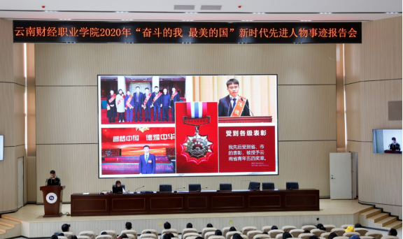 为深入贯彻习近平新时代中国特色社会主义思想和党的十九大精神,全面落实习近平总书记在庆祝中华人民共和国成立70周年大会、全国教育大会、全国高校思想政治工作会议、学校思想政治理论课教师座谈会上的重要讲话精神,发挥新时代先进人物榜样示范作用,2020年6月16日,我校特邀请“奋斗的我 最美的国”昭通学院宣讲团到校开展先进事迹报告会。报告会由仲新副校长主持,党委委员、副校长刘宁飞,党委委员、宣传部长陈君奇,学工部、团委、二级学院负责人以及部分学生代表参加了报告会。