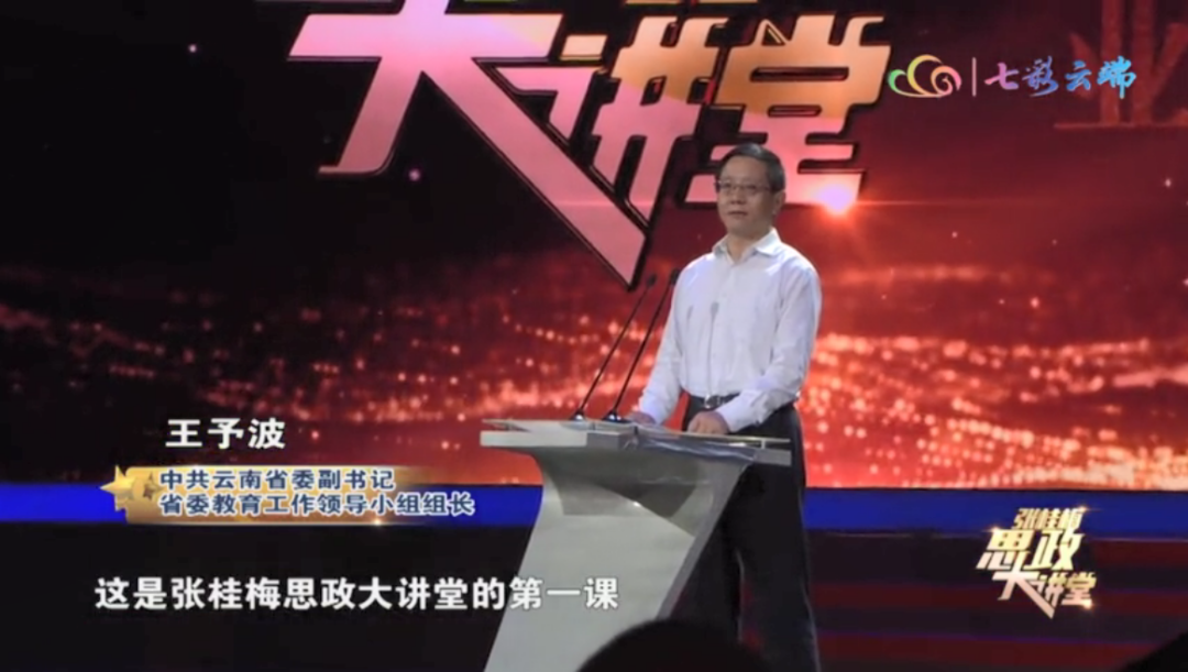 中共云南省委副书记、省委教育工作领导小组组长王予波同志在报告会上作了发言,他说,举办《张桂梅思政大讲堂》并邀请张桂梅老师做首场报告会,就是要旗帜鲜明地加强思想政治教育,用习近平新时代中国特色社会主义思想铸魂育人;要以大讲堂为牵引,引导全省大中小学既加强“思政课程”,也加强“课程思政”建设,推动思想政治教育质量提升内涵发展,将价值塑造、知识传授、能方力培养融为一体,实现全员全过程全方位育人;要打造全省思政教育第一金课,使大讲堂成为一个导向、一个标杆、一种激励。