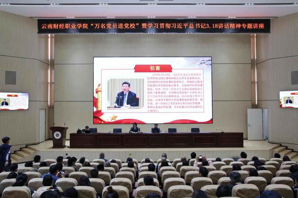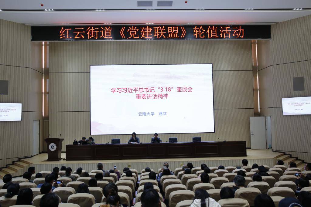 为深入学习贯彻习近平总书记在学校思想政治理论课教师座谈会的重要讲话精神,解决好“培养什么人、怎样培养人、为谁培养人”这个根本问题,做好新时代学校思想政治工作。2020年10月23日下午我校组织开展了“万名党员进党校”暨学习贯彻习近平总书记3·18重要讲话精神专题讲座,讲座邀请云南大学蒋红教授主讲,全校党员教职工、党员发展对象和红云街道“党建联盟”成员单位代表参加了本次讲座。活动由学校党委委员、纪委书记杨红英主持。