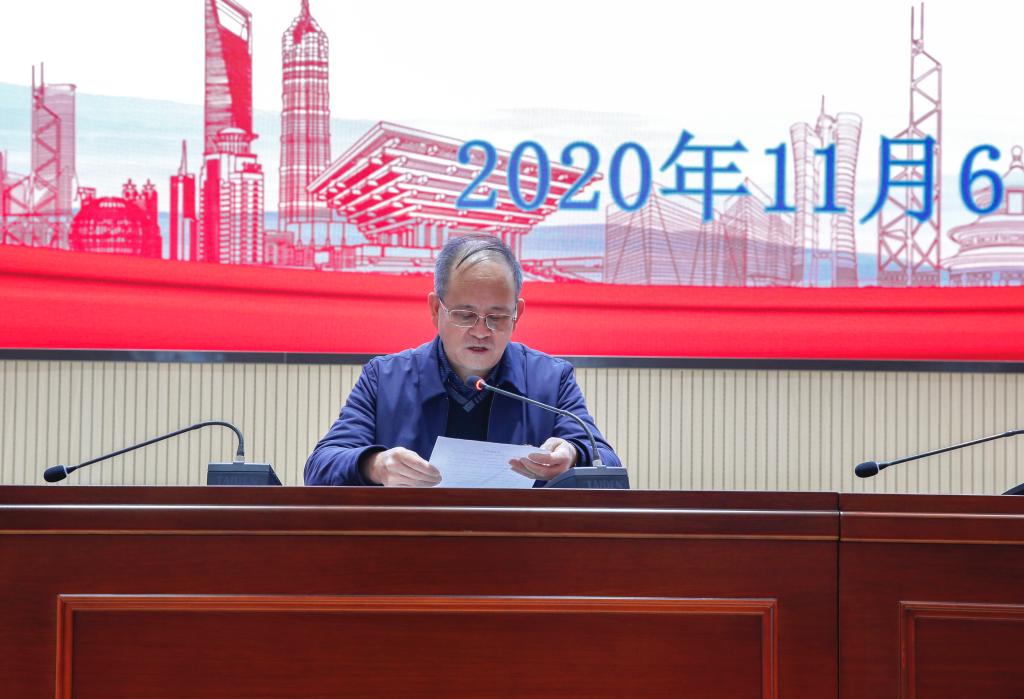 党委书记李思泽同志领学中国共产党第十九届中央委员会第五次全体会议公报,传达学习党的十九届五中全会精神。他要求各部门主要负责同志,先学一步、深学一层,并在全校范围内认真做好全会精神的学习宣传。