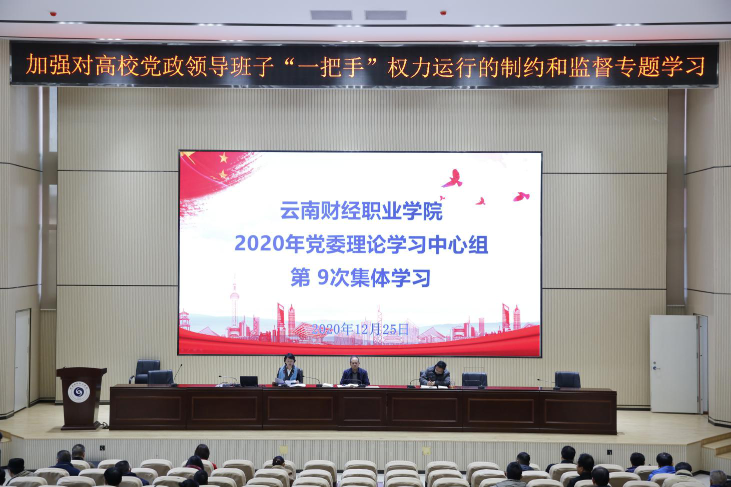 12月25日上午,学校在报告厅举行2020年党委理论学习中心组第9次集体学习,本次主题是加强对高校党政领导班子“一把手”权力运行的制约和监督,深入推进高校党风廉政建设和反腐败斗争,党委书记李思泽同志主持学习,学校党委委员、中层管理干部、各支部支委参加学习。