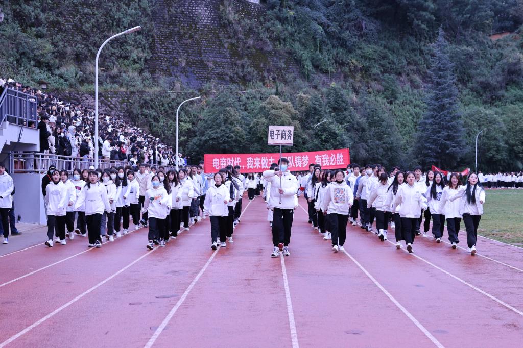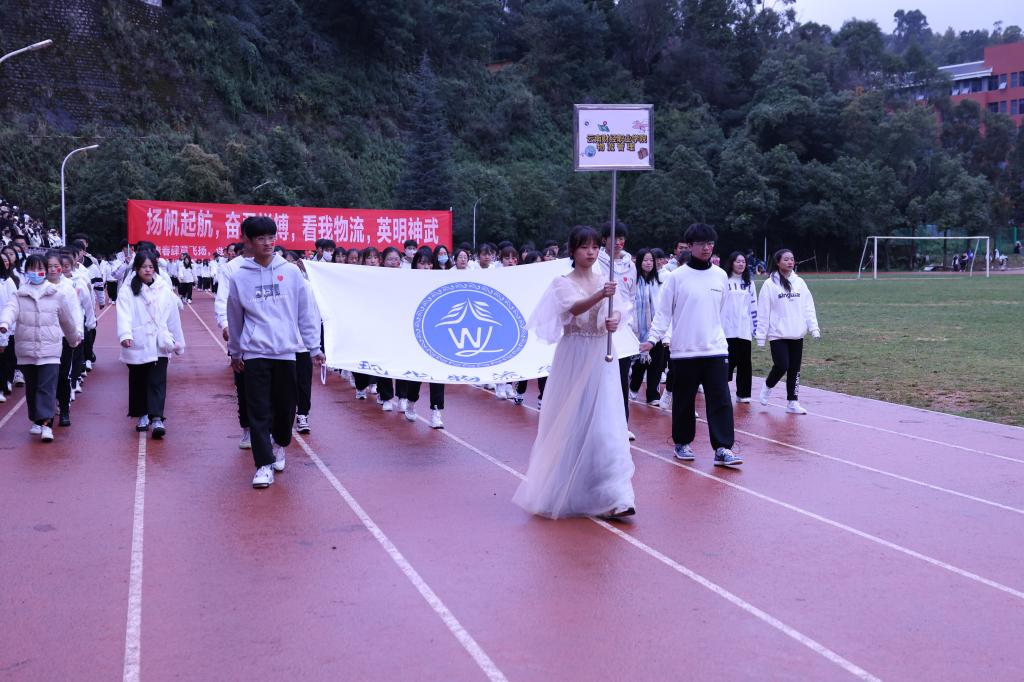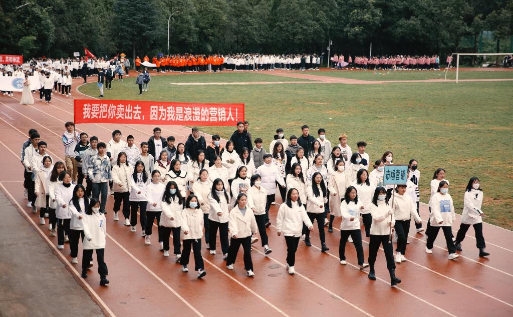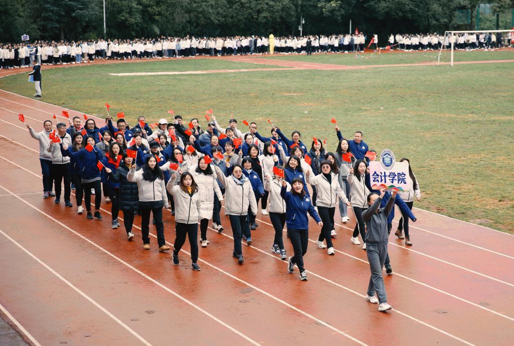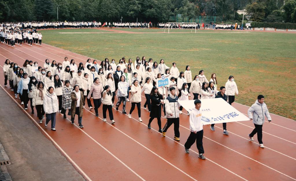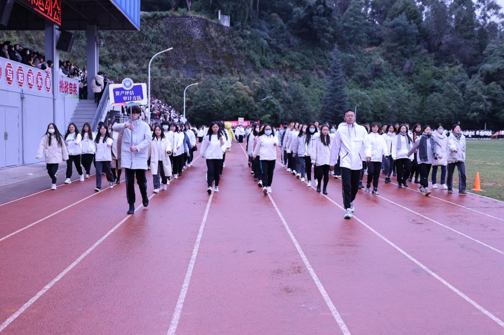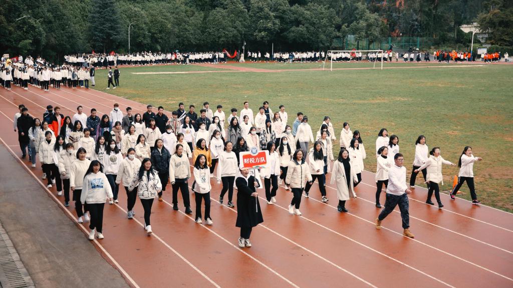 迈着整齐的步伐,和着响亮的的口号,国旗队、彩旗队、教职工方队、学生方队按顺序入场。师生们热情高涨、精神抖擞,脚下沉稳的步伐,意气风发的脸庞,展示出全新的财职精神、财职形象、财职气质!