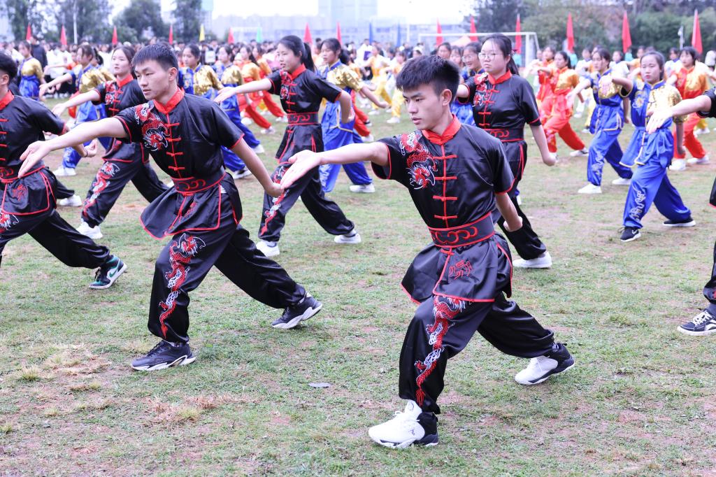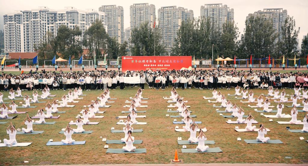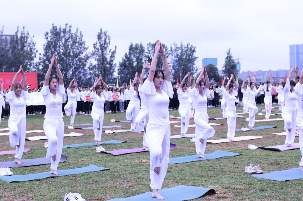“动若脱兔,潇洒飘逸;静若处子,潺潺悠然”。开幕式上武术表演拳法行云流水、虎虎生威,瑜伽表演身形轻盈、气质优雅。武术的强力与瑜伽的柔美展现了财职学子阳光健康的精神风貌,为本场开幕式营造了热烈的气氛。