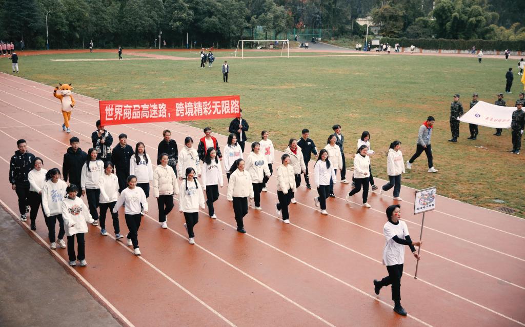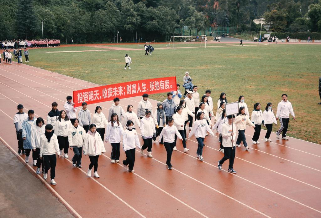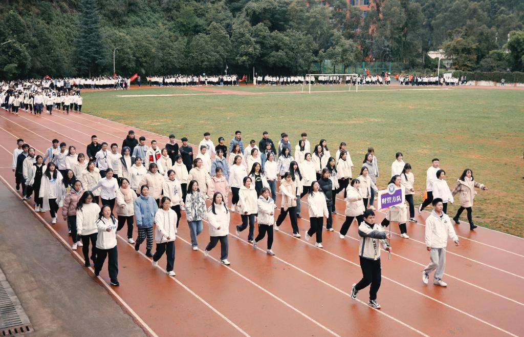 在雄壮的国歌声中,本届运动会正式开始。学校党委书记张金甫同志致开幕式辞,他代表学校党委对本届运动会的召开表示热烈的祝贺,向参加本次运动会的运动员、裁判员、志愿者和广大师生员工致以诚挚的敬意和谢意!他指出,今年恰逢党的百年华诞,站在“两个一百年”奋斗目标的历史交汇点,我们将迎来举世瞩目的北京冬奥会和冬残奥会。“一起向未来”的主题口号是中国向全世界发出的倡议,也是云南财经职业学院向每一位同学、老师发出的诚挚邀约。希望师生们在运动场上以体魄展现自信,以笑容抒写热情,以汗水浇灌收获。