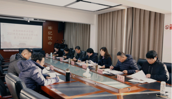 12月24日上午,我校举行2021年党委理论学习中心组第13次集体学习。本次学习的主题是“学习贯彻第十一次党代会精神”。学校党委书记张金甫同志主持学习,学校党委班子成员参加学习。