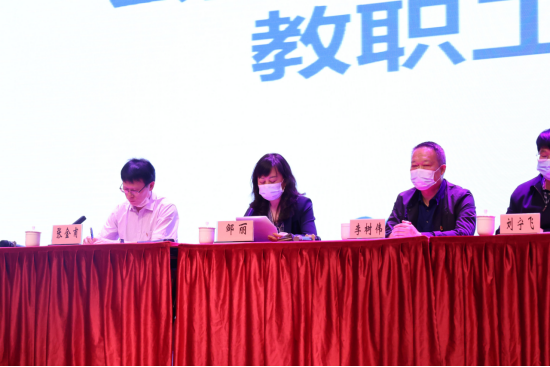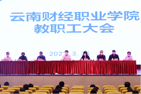 2022年3月25日下午,我校在大礼堂召开全校教职工大会,校领导和全体教职工参加,党委副书记、校长邹丽主持会议。