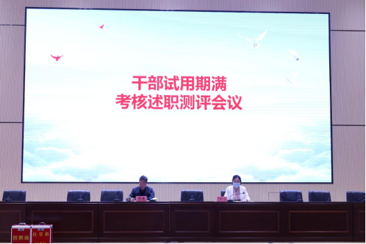 2022年3月28日上午,我校于新报告厅召开干部试用期满考核述职测评会议。会议由学校党委副书记仲新同志主持,学校领导班子成员、全体中层干部、教职工代表参加会议。