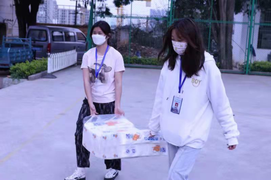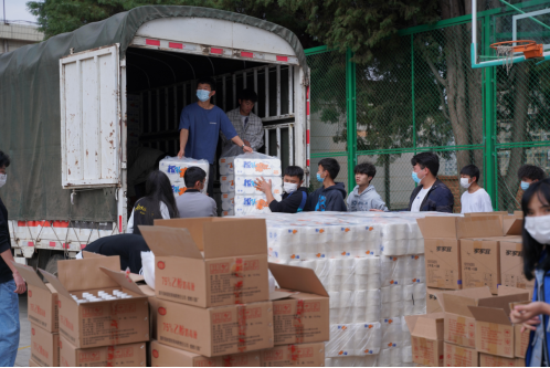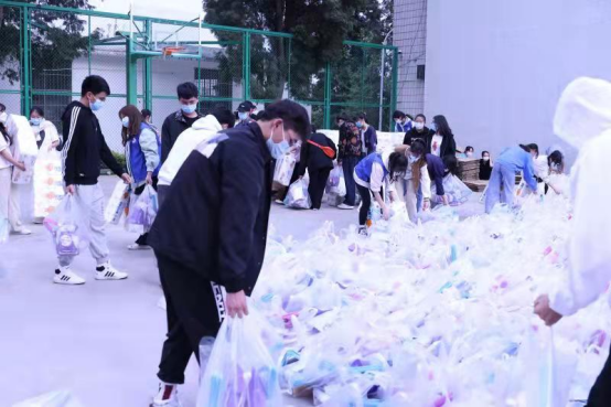 在疫情防控的关键时期,学校不仅认真落实各项防疫要求,而且也把同学们在校园疫情管控期间的生活质量和所思所盼作为工作的重中之重。此次学校为每个学生宿舍准备了除菌洗衣液、卫生纸、消毒酒精、肥皂等生活防疫物资,以寝室为单位给同学们发放。