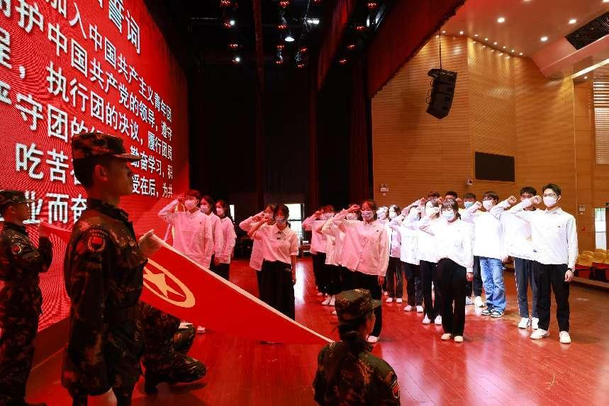 集中入团仪式在庄严的国歌声中拉开序幕,与会领导为新入团员佩戴团徽。随后,新团员们举起右拳、挺胸抬头,在团旗前进行庄严宣誓,用坚定的誓言表达着成为一名共青团员的责任和担当。