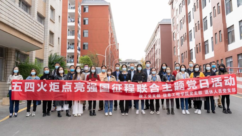 为贯彻落实党中央、国务院决策部署和省委、省政府工作要求,充分发挥党支部战斗堡垒作用和师生党员先锋模范作用,根据省委教育工委省教育厅《关于在疫情防控一线中切实发挥基层党组织和党员作用的通知》及学校党委和组织部《关于在疫情防控工作中抓实做好“我为群众办实事”实践活动的通知》,2022年5月4日星期三下午,信息工程学院党支部、政工党支部、退休人员党支部联合开展了以“五四火炬点亮强国征程”为主题的主题党日实践活动。
