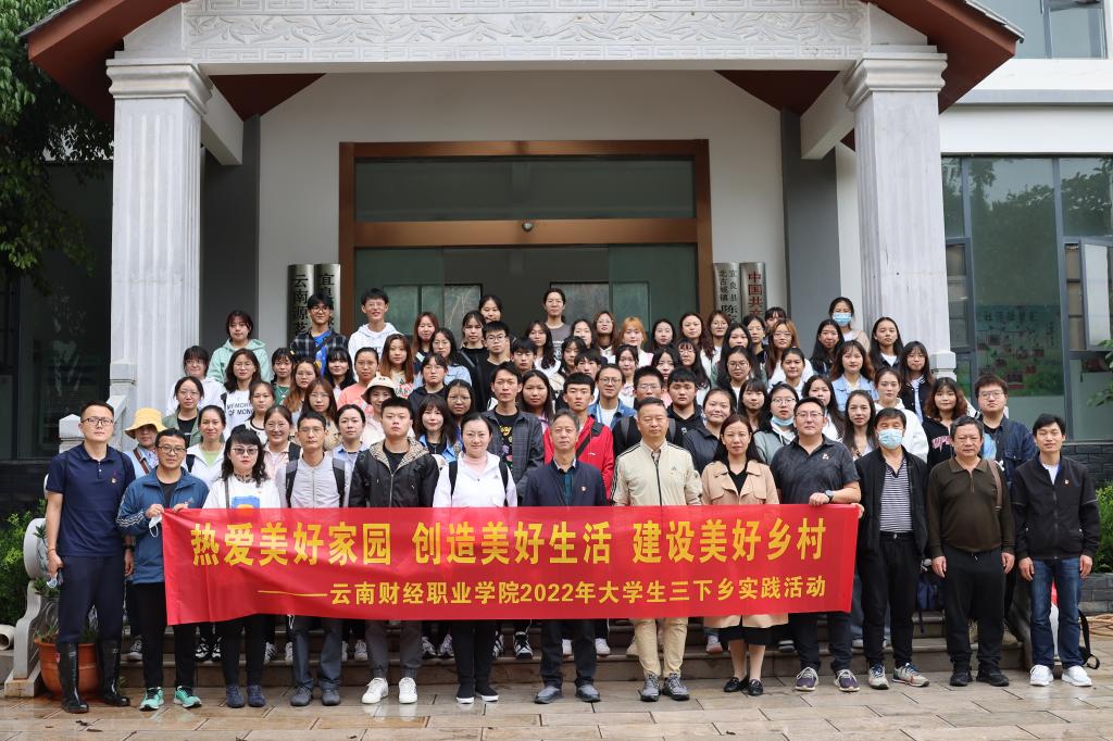 为深入学习习近平新时代中国特色社会主义思想,深入贯彻学习习近平总书记考察中国人民大学重要讲话精神,落实立德树人根本任务,将革命传统和中华民族伟大精神更多地传递给学生。进一步引导学生坚定理想信念、厚植爱国主义情怀、体验美丽乡村、培养劳动新观念,结合学校思想政治理论课建设和宣传思想工作重点任务,提高学校思想政治工作实效,有效推动思政小课堂同社会大课堂有机结合,以优异的成绩迎接党的二十大召开。2022年5月27日,在学校党委书记张金甫、副书记仲新、副校长严黄一仪等领导的带领下,思政课教师、学工队伍、学生干部、青马班学员和学校统战部组织的学校无党派人士、民主党派、留学归国人员联谊会等一行80余人赴宜良县陈家渡社区紫郦茶庄园和宜路陆游击大队纪念馆开展“热爱美好家园 建设美好乡村”和“传承红色基因 践行初心使命”实践教学活动。