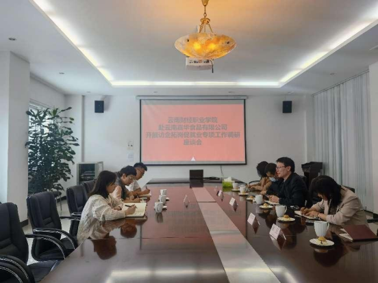 为进一步落实好““书记校长访企拓岗促就业”系列活动”促进我校毕业生实现更加充分更高质量就业,2022年5月27日上午,学校党委书记张金甫带队走访云南嘉华食品有限公司,会计学院院长尹湘萍、工商管理学院党支部书记周跃、院长石彬一同参加走访调研活动。