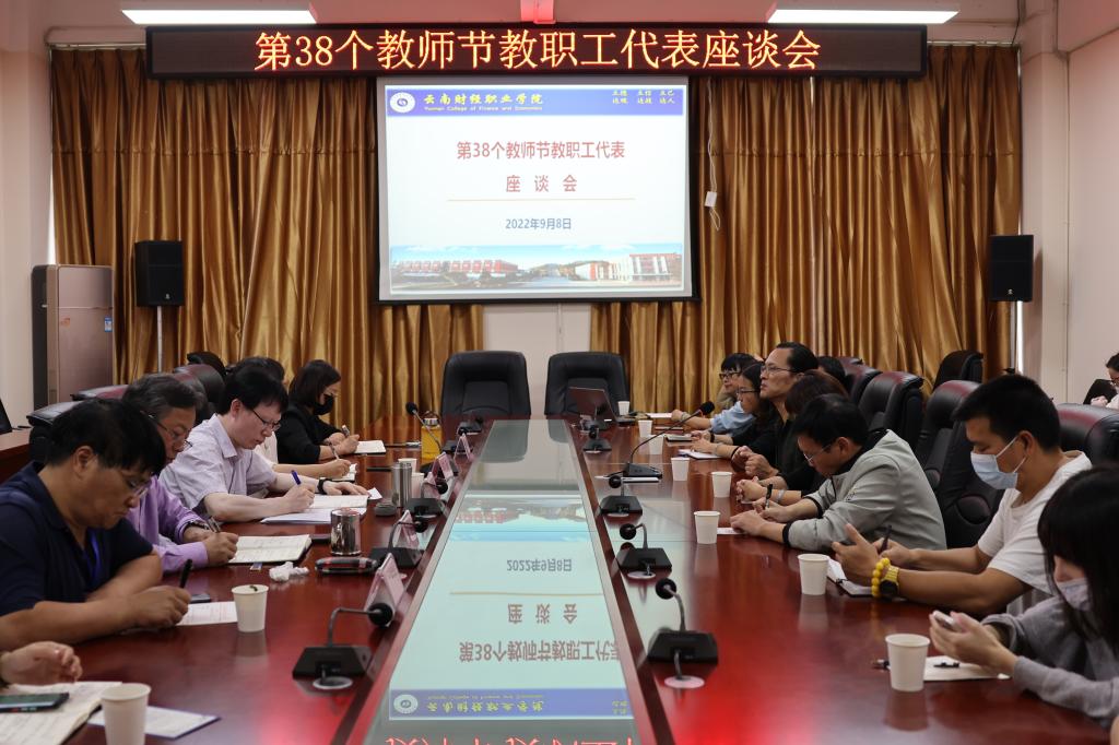 9月8日下午,在第38个教师节来临之际,学校在财苑楼三楼会议室召开2022年教师节教职工代表座谈会。学校领导,有关职能部门负责人,与来自全校教职工代表共聚一堂,共迎双节,共话学校现状,共谋学校发展。座谈会由学校党委副书记、校长邹丽主持。