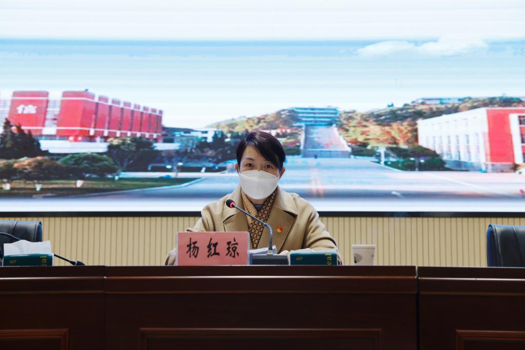 12月22日,省委教育工委2022年省属学校年终考核第七检查组莅临我校检查指导工作。考核组组长、省委教育工委委员、省教育厅党组成员、省人民政府教育督导团总督学杨红琼,副组长、玉溪师范学院党委副书记张亚辉,副组长、昆明学院党委委员、纪委书记罗荣辉,考核组成员李春亭、陈英、张颖、李啸、赵强峰、乔永锋、牟鹏燕、周顺飞、魏正子、董云杰、袁慧鑫、陈兴伦一行到校检查指导工作。考核动员会在学校铭德楼报告厅进行,考核组领导、学校领导、中层干部、党员代表、教职工代表、民主党派人士、退休干部参加了会议。会议由学校党委副书记、校长邹丽主持。