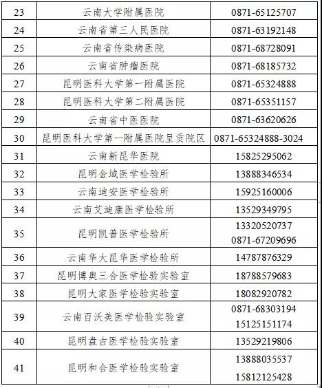 Q13:昆明市域内具备资质的核酸检测机构有哪些?联系方式是什么?