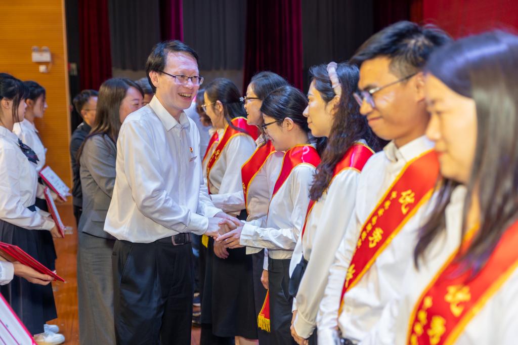 表彰会上,师生欢聚一堂,通过合唱、诗歌朗诵、舞蹈、情景剧等表演形式展示了云财职师生昂扬向上、锐意进取的精神风貌,体现了学校师生团结、温馨、和谐的校园氛围,表达了全校师生对新时代的赞美,对伟大祖国的美好祝福。