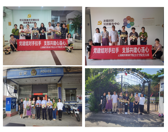 62日下午,会计学院党支部书记带领支委、党员同志和会计学院团总支副书记到月牙塘公园志愿服务站、月牙塘社区、月牙塘派出所、云康幼儿园以及龙锦社区进行了“劳动教育成果分享”,各位同志均表示插花作品不仅体现了同学们的实践能力、动手能力和创造力,同时也期望以此为契机,加强党支部之间的共建活动。