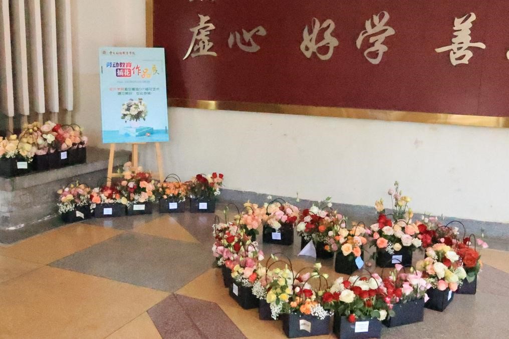 每班精选了一份作品交到了学院,学院将各班的插花作品于立德楼一楼进行了展示,同学们在展示过程中也看到了其他班优秀的地方,在互相交流过程中不断增强职业院校学生职业荣誉感,提升就业创业能力,树立正确择业观,让劳动最光荣、劳动最崇高、劳动最伟大、劳动最美丽的观念蔚然成风。