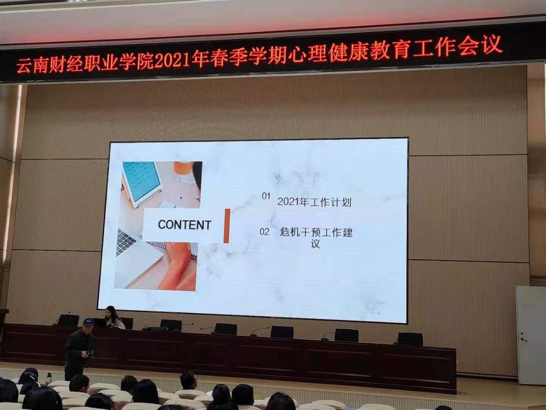 2021年4月8日下午2点30分我校在报告厅召开了2021年春季学期心理健康教育工作会议,会议由学生处处长马佳佳主持,会计学院全体辅导员和班主任参加了此次会议。