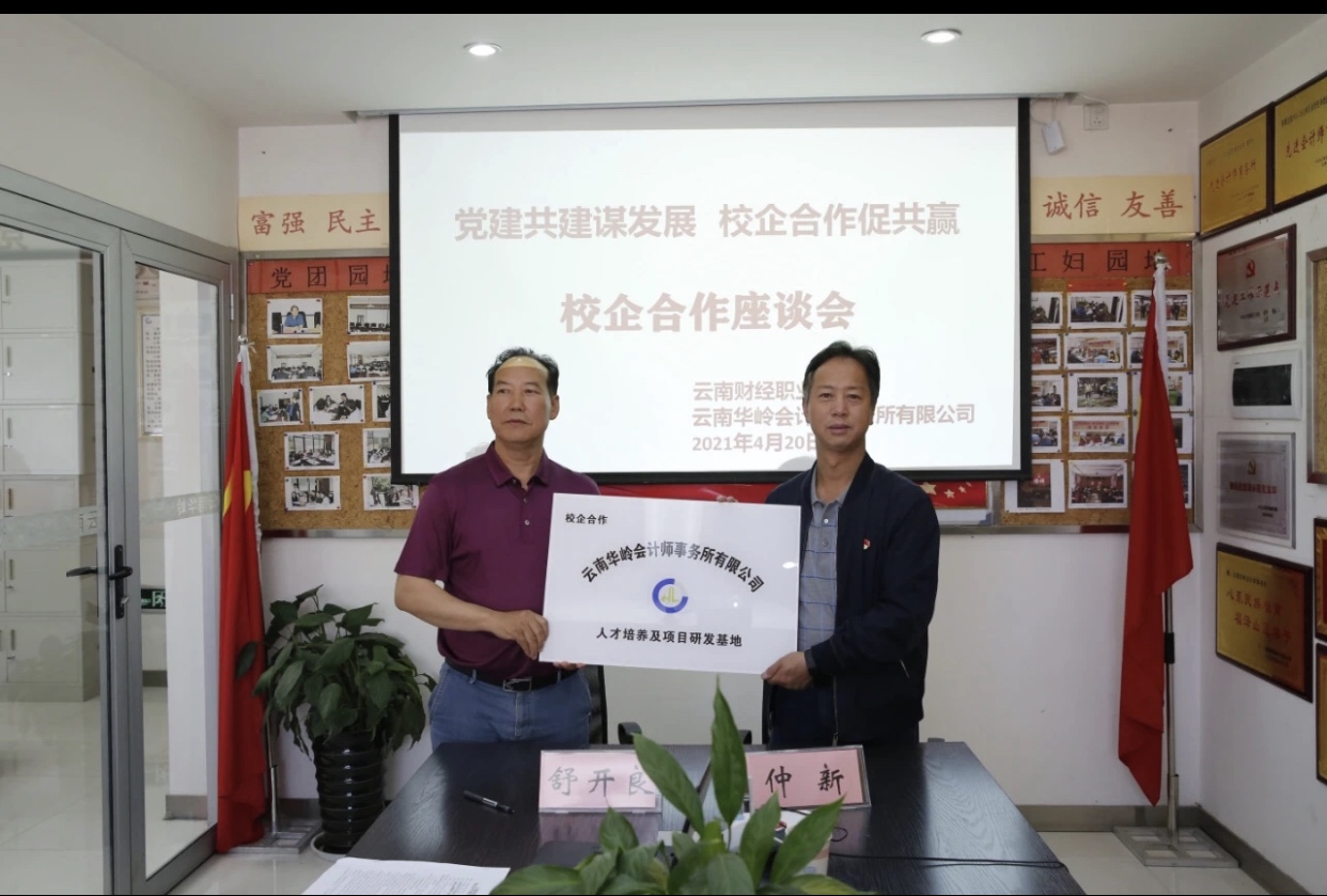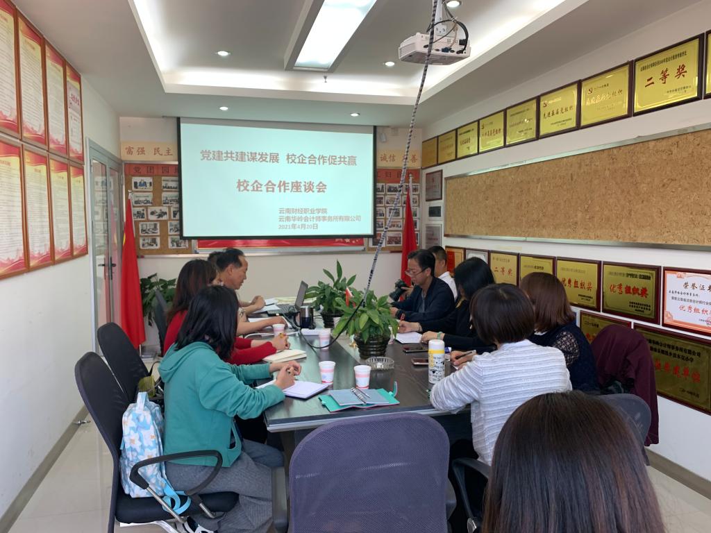 2021年4月20日,在学校仲新副书记的带领下,会计学院院长尹湘萍、副院长杨雯婷一行到云南华岭会计师事务所有限公司进行企业走访调研活动,并在该公司会议室展开会谈。