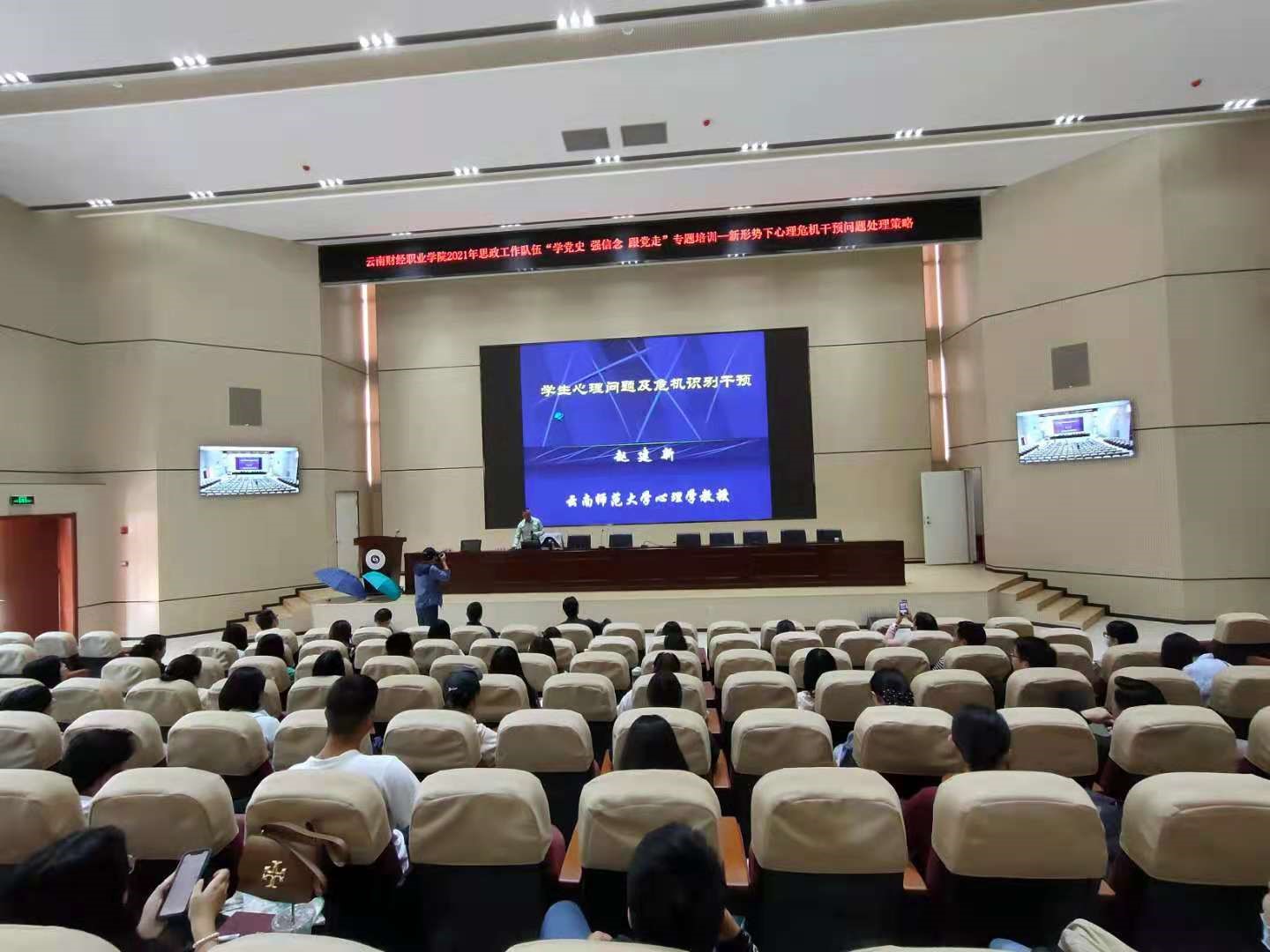 加强大学生心理健康教育是新形势下全面贯彻党的教育方针、实施素质教育的重要举措,是促进大学生全面发展的重要途径和手段,是高校德育工作的重要组成部分。为加强大学生心理健康教育工作,促进大学生身心健康和谐发展,我校举了2021年思政工作队伍“学党史、强信念、跟党走——新形势下心理危机干预问题处理策略”专题培训,会计学院全体辅导员和班主任参加了此次培训。