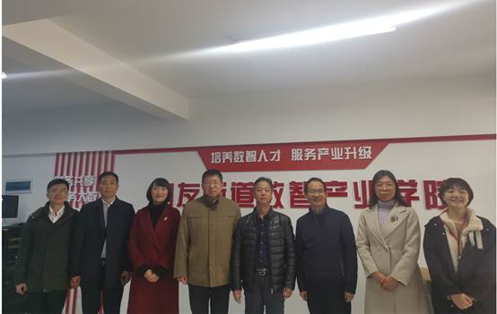 典礼后,学校党委副书记仲新陪同新道公司副总裁刘曙光等一行人前往参观用友新道数智产业学院,校企双方围绕进一步加强数智产业学院建设进行了深入研讨交流。对深化合作构建产业特色模块课程体系、推进新专业人才培养、真正建成具有特色的实体产业学院等内容达成一致共识,表示将充分发挥各自优势,集多方资源,深度融合发展,共育数智产业人才,打造产教融合新高地,再添校企合作新篇章。