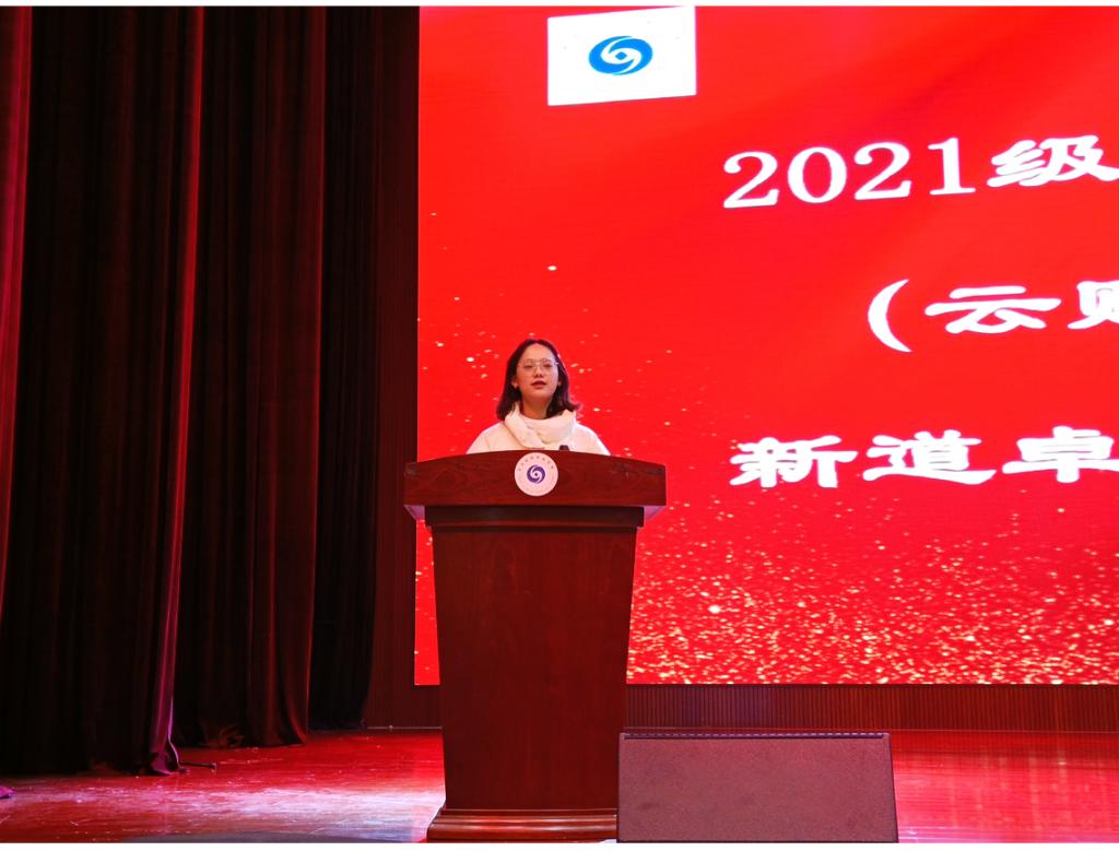 2021级云财务会计师1班葛鲁豫同学作为学生代表发言。她首先代表新生感谢学校和企业为学生人才培养和专业建设提供的帮助和支持。在云南财经职业学院度过的第一个秋天,让新生们十分难忘,在这里认识到了新的同学,确定了新的目标,用汗水铸就我们的绚丽青春,用奋斗书写新的璀璨人生。
