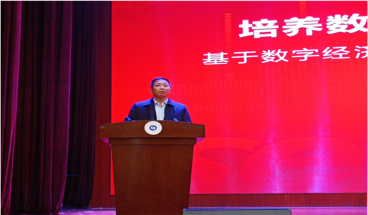 新道科技股份有限公司副总裁刘曙光在开班典礼中发表讲话,他首先代表新道科技对学生们成为2021级大数据与会计专业(云财务会计师方向)班的新生,表示衷心的祝贺。学院“立德、立信、立己,达观、达技、达人”的校训与新道科技“专业奋斗、成就客户、健康阳光”的核心价值观理念高度契合。此次的新道云财务会计师开班,是落实数智产业学院建设的进一步、是深度校企合作的融合点,相信通过双方紧密的配合与协同,一定能够在学院专业群建设、双师型教师培养、精品课程与教材开发、学生高质量就业等方面取得丰硕成果。最后,希望新道云财务会计师班的同学们拿出态度和热情,激发想象力、点燃创新能力,构建思维框架,加强学习,提高自己的本领,以迎接未来职场的挑战,并祝愿每一位同学有所成就,前程似锦!