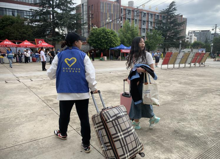 进入学校的大门,大学的校园风光映入眼帘,新生们带着求知,好奇的心,跟着志愿者的指引,来到了信息工程学院的迎新点。迎新点处,学长学姐们认真细致地引领新生入学,妥善地协助新生办理入学注册,并将入学物品交至新生手上。老师们认真回答着家长和新同学提出的关于大学学习生活的疑问,学长学姐们热心地帮忙搬运行李,带着学弟学妹们前往宿舍。