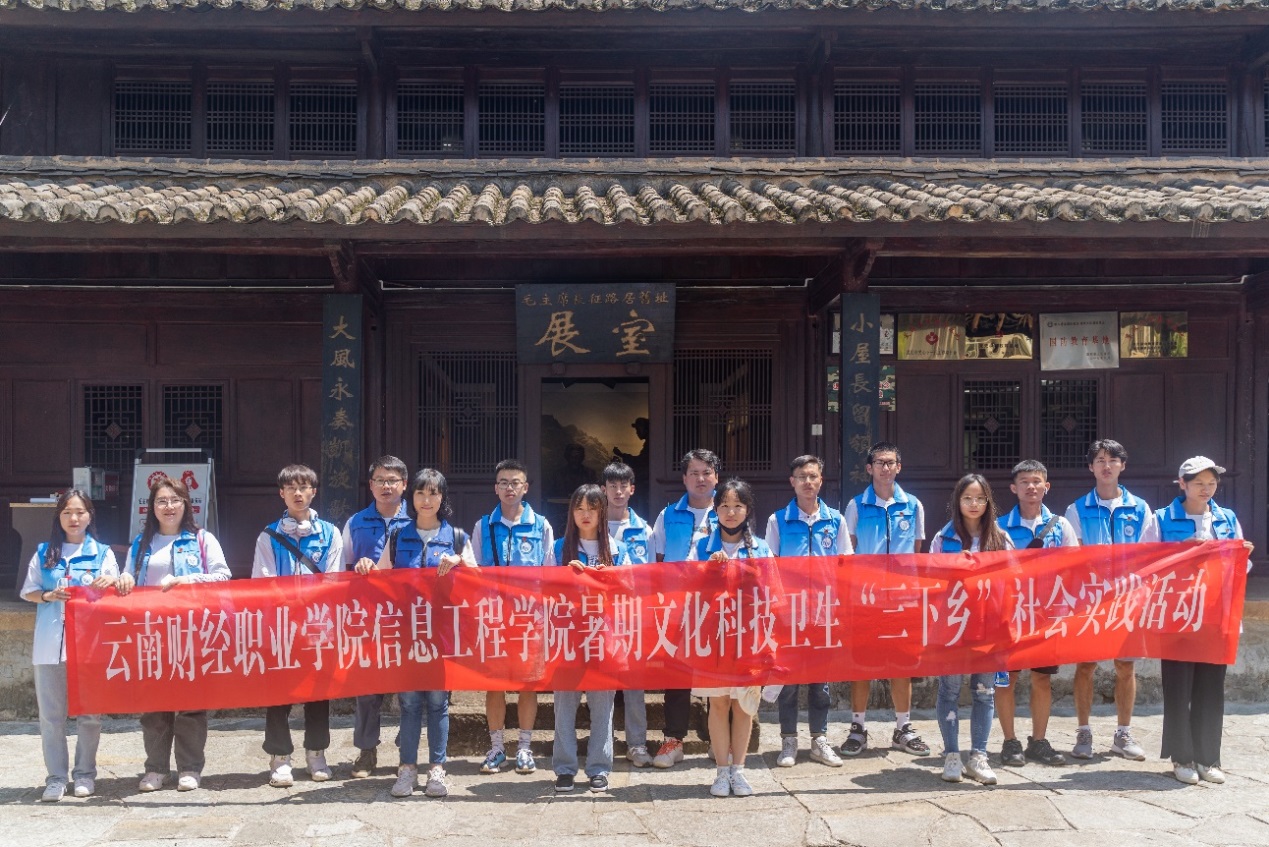202277日,信息工程学院16名师生从学校出发,中午抵达禄劝县翠华镇界碑村。80多年前红军长征时,毛主席曾路居于界碑村里的“汪家小院”,周恩来则居住在不远处的白家大院。2017年汪家小院被评为市级爱国主义教育基地,并命名为“中国工农红军长征毛主席路居纪念馆”。馆内陈列着毛主席用过的桌子、木床、马灯等物品。这三件物品也是纪念馆的镇馆之宝,汪家小院的这“三宝”代表着红军同人民群众生死相依、患难与共、艰苦奋斗的长征精神。
