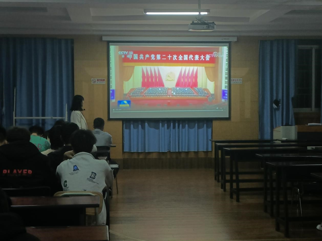 此次活动包括观看“二十大”相关视频、教师重点引导解读、学生结合学习生活实践谈感悟三个环节。辅导员重点引导学生要切实实践习近平同志在作党的二十大报告中勉励广大青年的寄语,“让青春在全面建设社会主义现代化国家的火热实践中绽放绚丽之花”,坚定不移听党话、跟党走,要“立志做有理想、敢担当、能吃苦、肯奋斗的新时代好青年”。在学生谈学习感悟环节,学生纷纷表示倍受鼓舞、倍感振奋,深感作为当代中国青年赶上了最好的时代,锤炼“功成必定有我”的当担,以青春之我谱写中华民族伟大复兴新征程。